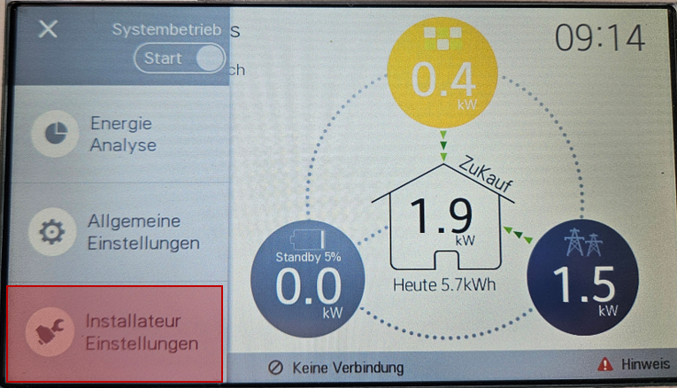 4. Installateur Einstellungen öffnen