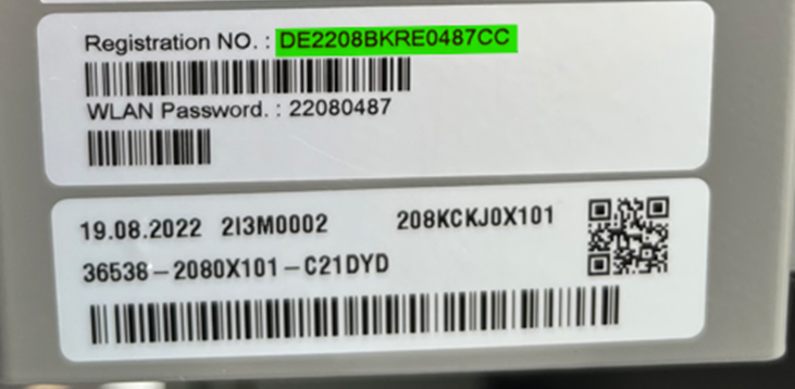 An der rechten Seite des Wechselrichters, am Typenschild, steht die Registrierungsnummer.